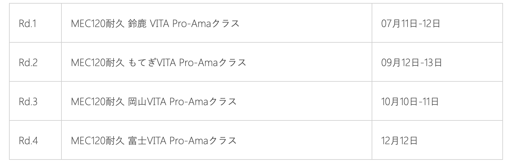 当社は、VITAとv.Granzが混走する「MEC120分耐久シリーズ」に参戦する、
