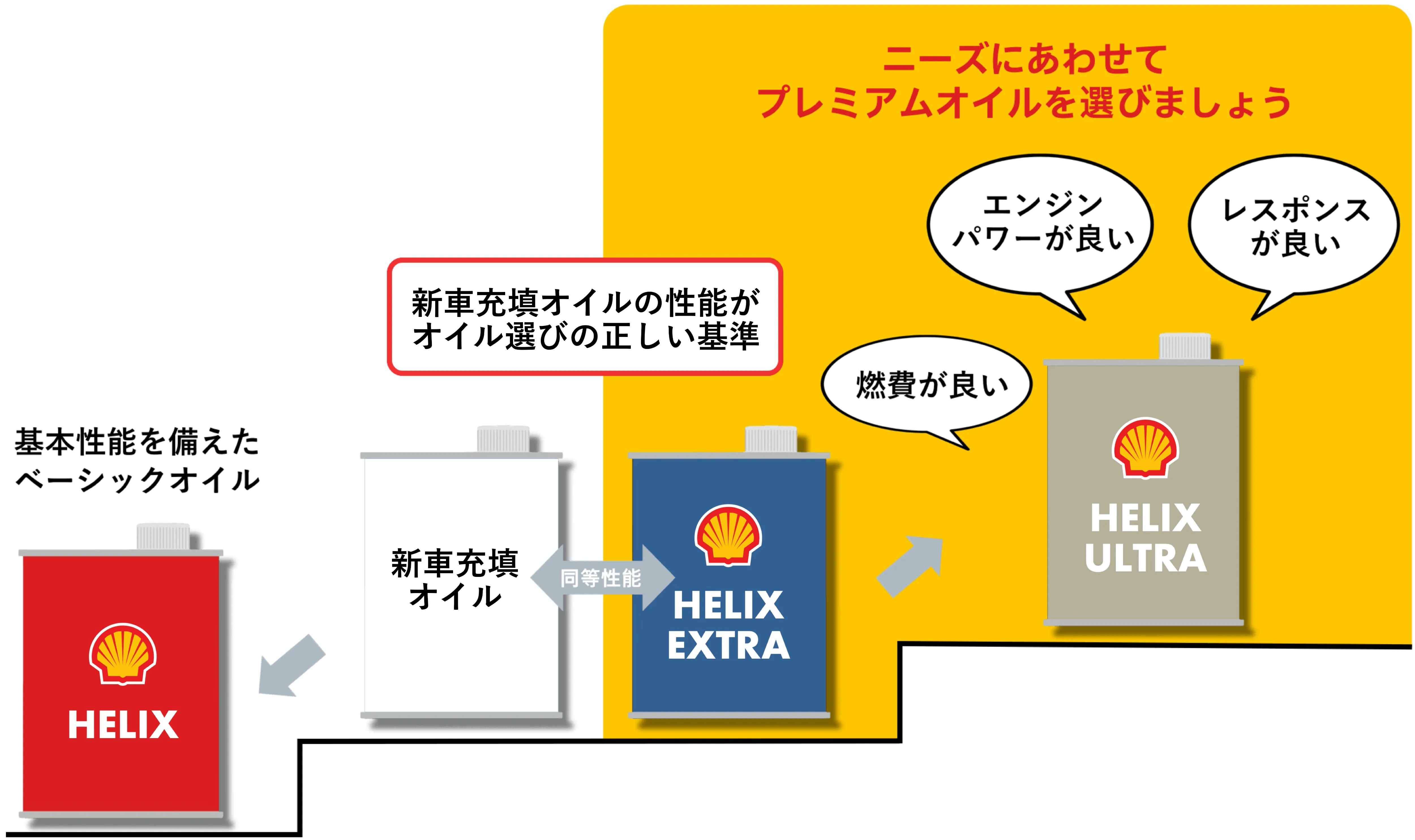 このShell HELIX EXTRAを基準に、お客様のニーズに合ったオイルを選びましょう。